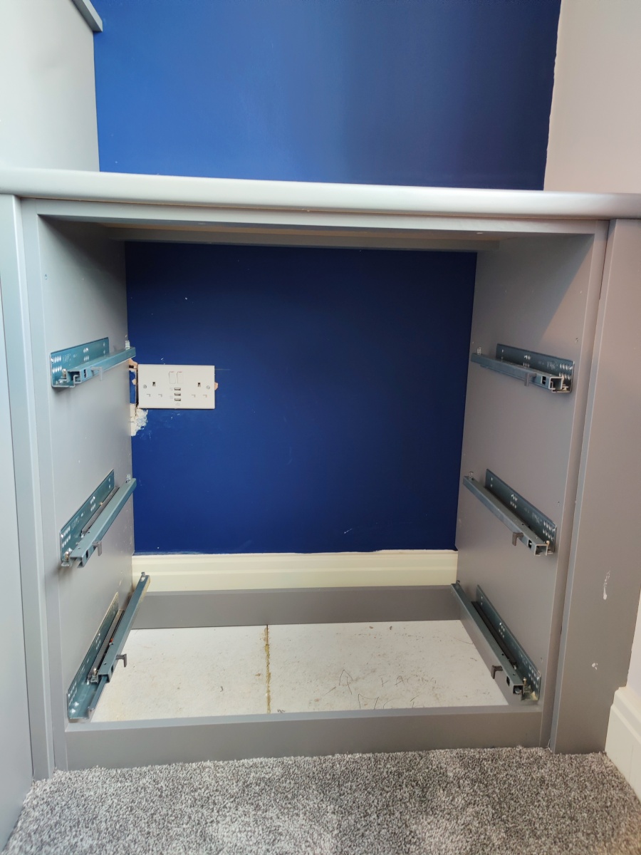 We put in a new plug socket for this customer behind their built-in wardrobe to power a desktop lamp and charger: