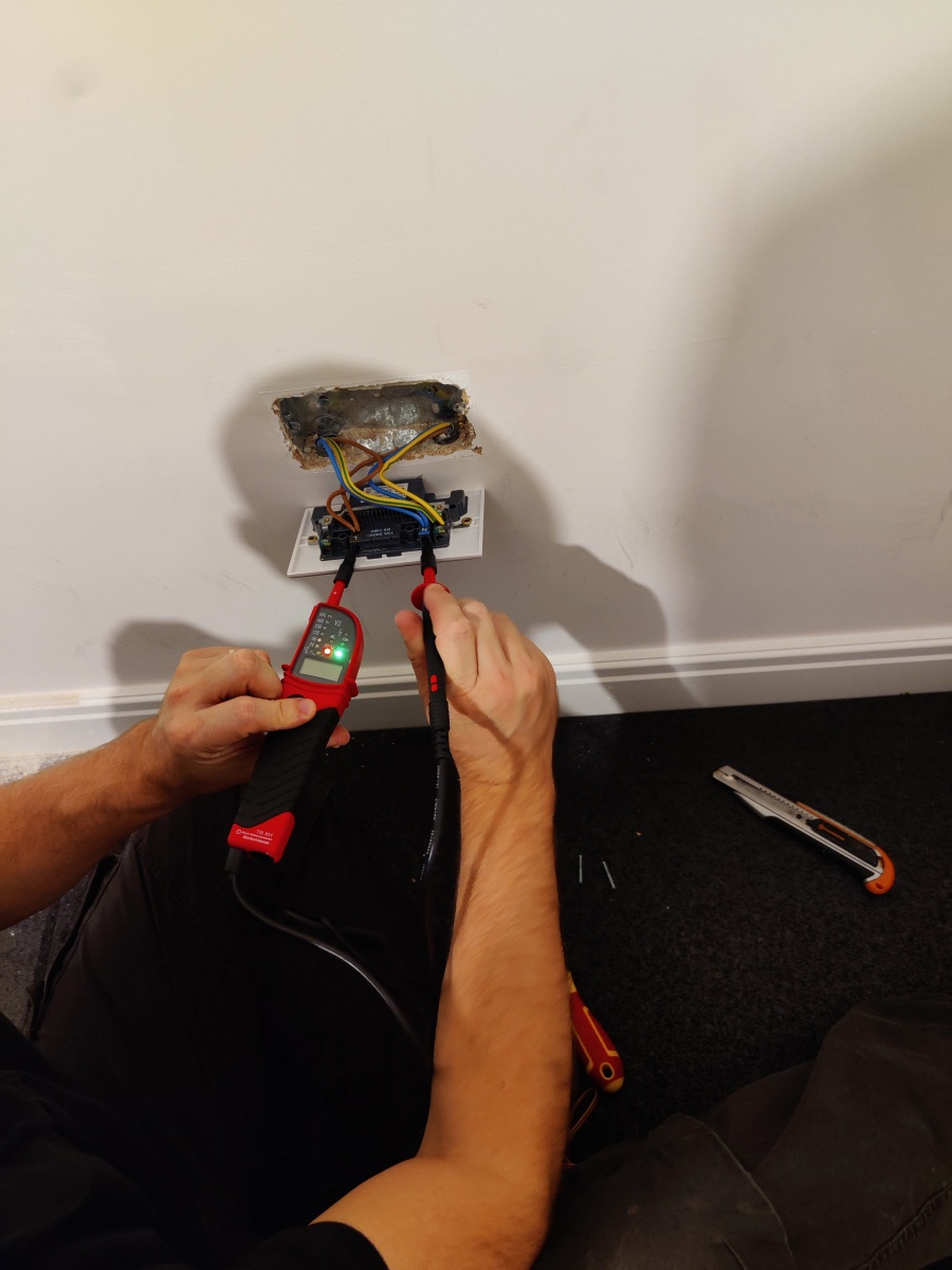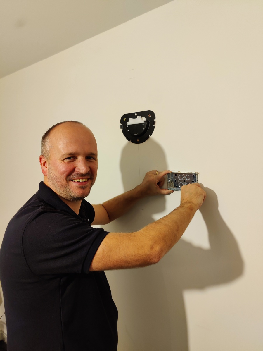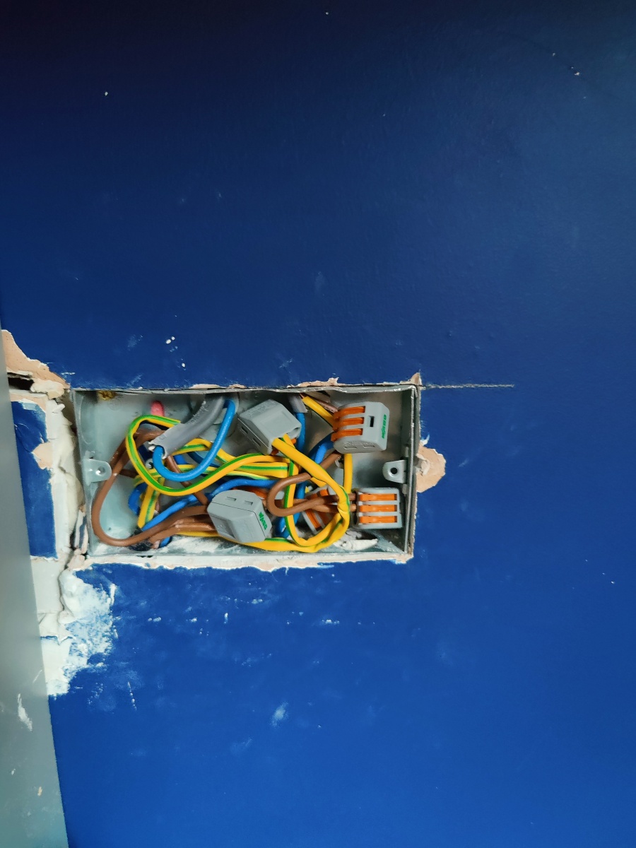 We inserted a raised plug socket for this customer to plug their wall-mounted TV into: